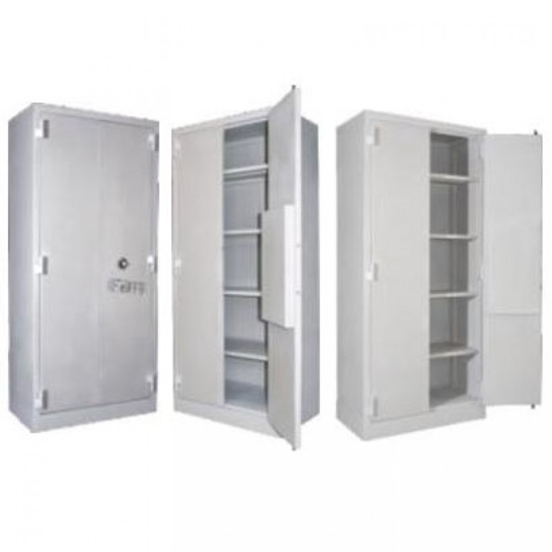 Mais espaço de armazenamento e proteção avançada para proteger o patrimônio de roubos. Cofre armário confeccionado em chapa 18 (1,20 mm), com 02 portas de abrir, 04 prateleiras removíveis, 03 dobradiças em cada porta e 02 travas, quando a porta esquerda esta fechada a direita fecha com 2 ferrolhos e mais 02 travas sendo uma superior e uma inferior. Fechamento: Segredo Mecânico com 3 discos e Chave Tetra. Para completar a decoração de seu ambiente corporativo, confira todas as nossas opções em móveis para escritório.