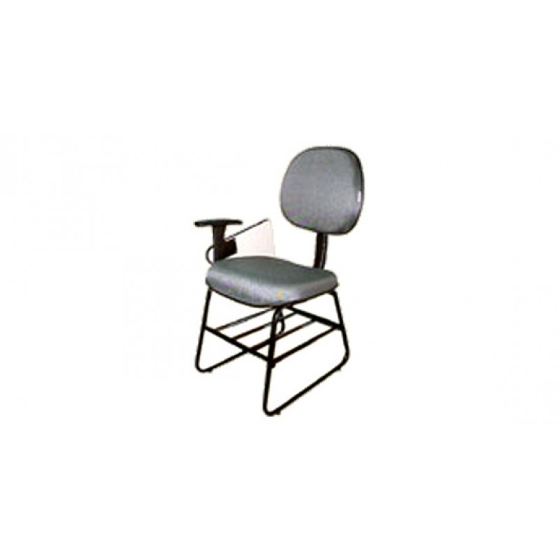 Cadeira universitária em concha dupla, estofada com espuma injetada e prancheta escamoteável. Possui pés ski em tubo de aço, porta livros e sapatas deslizantes de nylon. Duradoura e resistente, é oferecida em várias cores e padronagens.