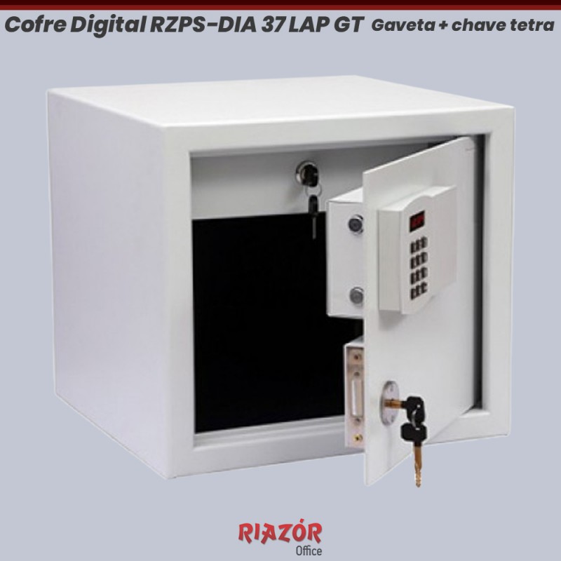 Os cofres em aço RZPSDIA37 LAP GT oferecem total segurança para seus documentos e objetos. O cofre Digital RZPSDIA37 LAP GT com 1 gaveta e chave tetra possui display digital e segredo eletrônico. Produto inovador, ideal para dinheiro e documentos, é um cofre para ser discreto e de fácil manuseio. Possui proteção contra invasores que bloqueia a abertura após três tentativas incorretas de senha. Além disso, possui Senha Mestra para abertura através do Suporte 24h. O modelo de cofre digital é econômico, o sistema eletrônico é desligado quando inativo. Pilhas localizadas no exterior do cofre. Para completar a decoração de seu ambiente corporativo, confira todas as nossas opções em móveis para escritório.