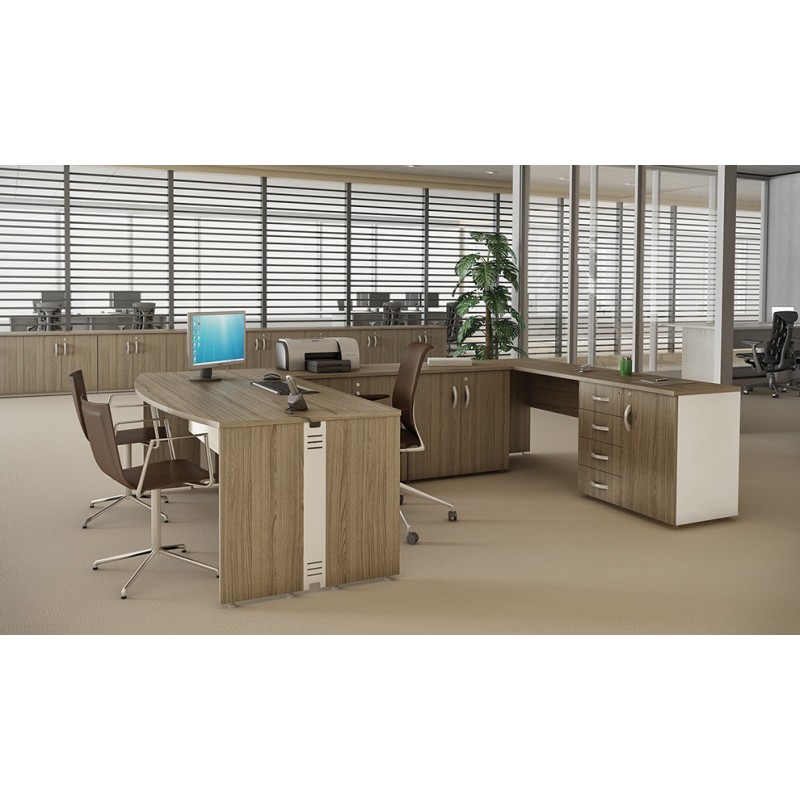 Na busca para atender um mercado mais exigente e diversificado a Riazór oferece a linha RZMV/ATT. A evolução do conceito de mesas de diretoria para escritório que proporcionam o conforto e a excelência de um móvel de qualidade, com opções de tamanhos que vão desde 0,80m à 1,80m e várias opções de combinações. Tampos e pés painel feitos em BP – 25mm, saias em BP – 18mm, calhas elétricas feitas em chapa de aço carbono.
