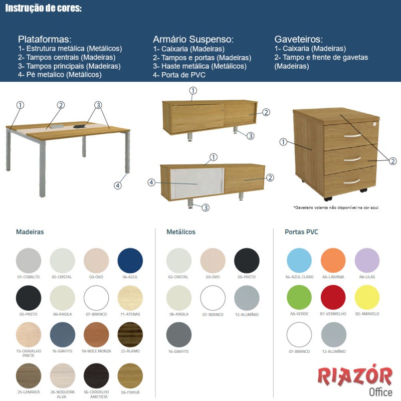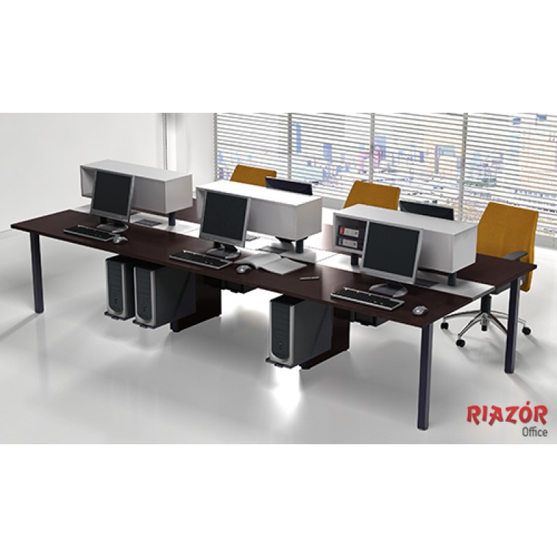 As plataformas de trabalho RZMV/WPA com armário suspenso é uma otima escolha quando é preciso otimizar o uso do espaço. Extremamente prático possui um armário central que facilita o alocamento para materiais de trabalho sem ocupar espaço ao seu redor. Tampo em BP 25mm com grande vida útil, pés feitos em tubos de aço 50x50mm, saída para 4 tomadas e 2 de áudio/dados no tampo central, armário central com corpo BP 18mm e portas em PVC ou BP 18mm.