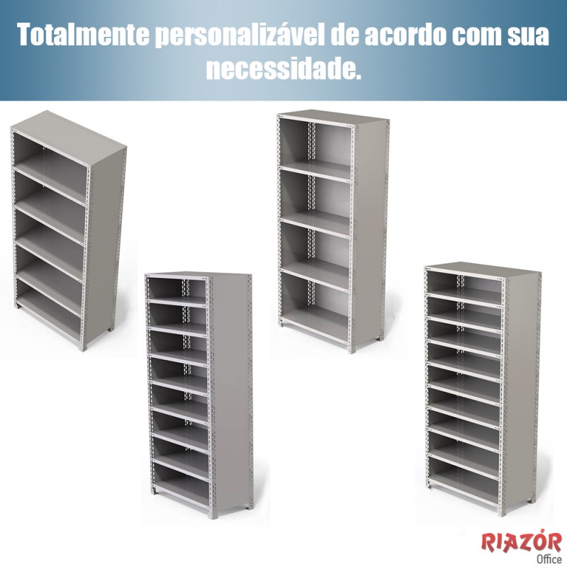 Esta estante em aço é espaçosa e extremamente resistente. A estante em aço contribui para a organização do ambiente possui 6 prateleiras e um visual robusto, com painéis de fundo e laterais que dão total estabilidade ao modelo. Prática e funcional, esta estante em aço é ideal para acomodar documentos e objetos variados. Esta estante em aço armazena de maneira versátil e segura e extremamente resistente. Além de uma opção moderna, os móveis em aço são práticos e recebem aplicação de tinta em pó hibrida, sendo que a polimerização ocorre em estufas com temperaturas próximas à 200 ºC, garantindo durabilidade, uniformidade e beleza aos armários. O produto ganha tratamento anti-ferruginoso recebendo desengraxe, proteção fosfática, enxague e aplicação de passivador inorgânico. Para completar a decoração de seu ambiente corporativo, confira todas as nossas opções em móveis para escritório.