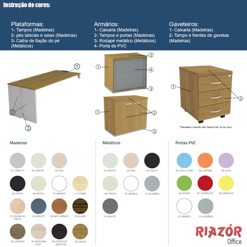 Com a mesa para diretoria RZMV/ATT o usuário tem liberdade de se plugar e desenvolver seu trabalho onde desejar, estimulando a criatividade e o trabalho cooperativo. Nichos, gavetas, arquivos e porta-acessórios são itens essenciais para garantir a ergonomia e a mobilidade dentro do seu escritório. Tampos e pés painel feitos em BP – 25mm, saias em BP – 18mm.