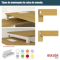 - Praticidade e comodidade com a caixa de tomada embutida e calha para fiação (no armário ou mesa).