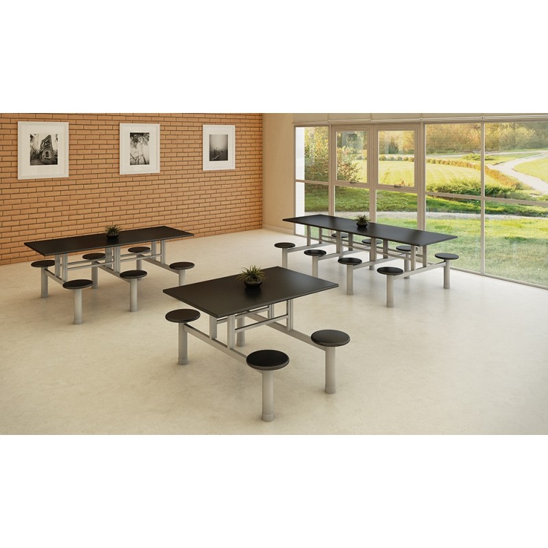 A mesa para refeitório RZMV com banco acoplado é indicada para restaurantes ou refeitórios empresariais. Ela possui um design limpo e versátil, podendo ser utilizada em diversos ambientes. Possui 2 opções de espessura de tampo, 18mm e 25mm. Pés laterias feitos em aço carbono com tratamento anti-ferruginoso, garantindo qualidade e resistência ao conjunto. Pode ser usado com bancos ou cadeiras, com opções de 4 a 8 pessoas por mesa.