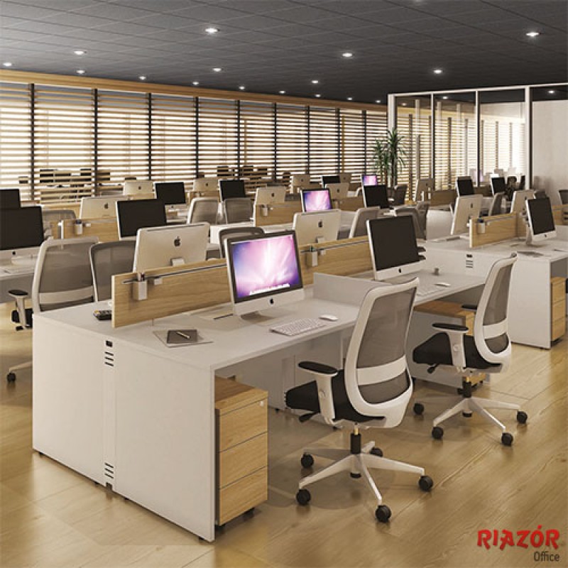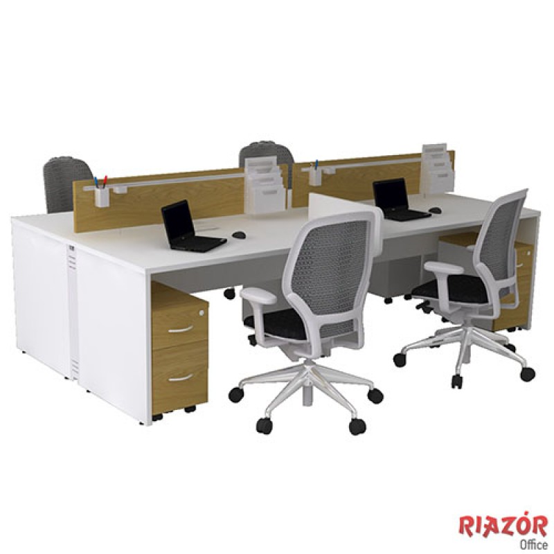 Com as Plataformas de Trabalho RZMV/ATT o usuário tem liberdade de se plugar e desenvolver seu trabalho onde desejar, estimulando a criatividade e o trabalho cooperativo. Nichos, painéis, arquivos e porta-acessórios são itens essenciais para garantir a ergonomia e a mobilidade dentro do seu escritório. Tampos e pés painel feitos em BP – 25mm, saias em BP – 18mm, calhas elétricas feitas em chapa de aço carbono com capacidade para 4 pontos tomadas e 2 pontos de voz/dados por pessoa.